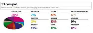 People will not pay for the services you provide online. That’s the stark conclusion you could draw from a new survey which looked at whether or not people would subscribe to popular Internet services, such as YouTube, Wikipedia or the BBC iPlayer. The survey found that the vast majority of people simply will not pull out their credit card to pay for material they already get free of charge. The biggest proportion of people prepared to pay was 25% for the BBC iPlayer, but only 2%, for instance, would pay for Twitter.