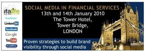Social Media in Financial Services will take place on 13th and 14th January 2010 in London and will feature key Internet experts.