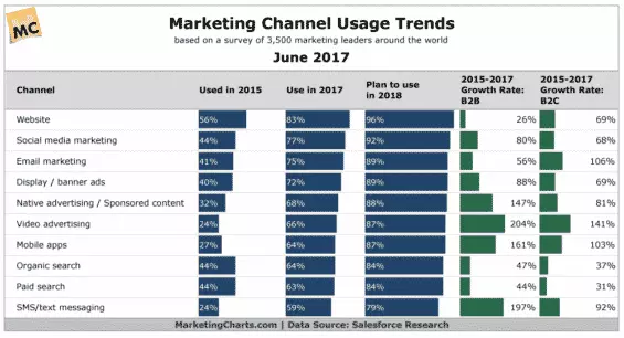 It now looks like that number is going to increase. With the widespread availability of more and more possible marketing channels, marketers appear intent on using them all. Indeed, a study by Salesforce suggests that over the next couple of years, marketers are intending to use every available channel to get their messages seen.