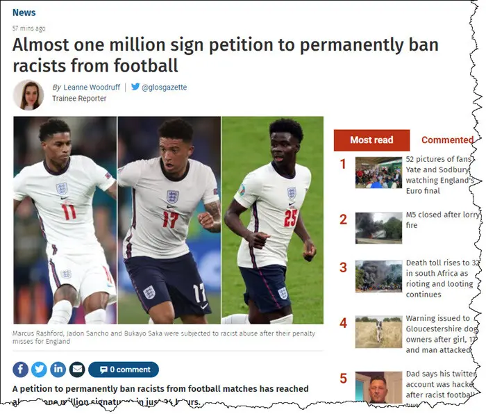 Racist abuse online is not new. It has been happening for decades. In the past couple of days, racist abuse has hit the headlines following vile online attacks against three England footballers, Marcus Rashford, Jadon Sancho and Bukayo Saka. On Sunday, these three black players did not score penalties in the crucial closing minutes of the UEFA European Championships final match against Italy.