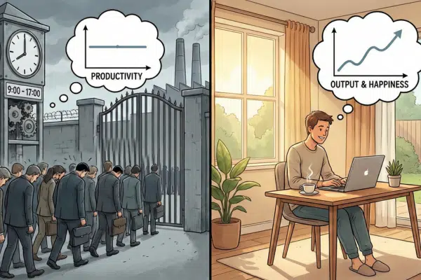 The “9 to 5” was invented in 1926 by Ford. Up until then, the concept of a strict set of working hours was unknown. The idea of the “9 to 5” routine is only 100 years old. For centuries before that, work was unregulated. Henry Ford noticed that when he limited people’s working hours, they became more productive. This is confirmed by research from Henley Business School, which shows considerable benefits from working fewer hours than the strict Monday-to-Friday 9-to-5 schedule, including increased productivity.